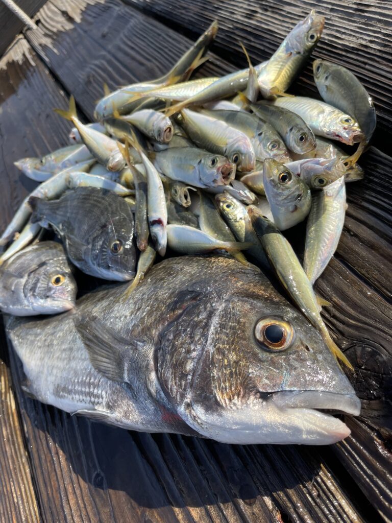 2025.09.26 釣果 釣り筏 本日の釣果情報_2025.09.26-001 釣り筏、 藤田さまの釣果です(∗ˊᵕ`∗) 藤田さま! お久しぶりです(≧∀≦) 最近来られてないなぁーって思ってたら来てくださいましたぁ! 35センチくらいの良型チヌと アジ沢山! アジはチヌ針で釣るのだからお見事すぎますね(๑’ ‘๑)و✧グッ! いつもありがとうございます♪