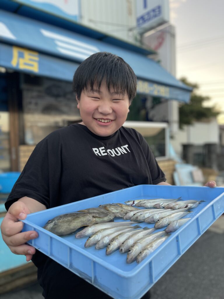 2025.09.27 釣果 オカッパリ 本日の釣果情報_2025.09.27-001 お客さま、つばさくんの オカッパリ釣果です(ᵔᗜᵔ*) 青虫と砂虫をご購入いただき キスとカワハギをゲット| ᐕ)و グッ! この笑顔! 大満足の釣果にニッコリ🎶 また遊びに来てね♡