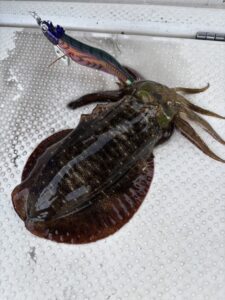 と思ったら、お知り合いの方がオカッパリでキス釣りするため当店で青虫を購入したと知り、じゃあキス舟釣り行ってあげる!となり、キス釣りとアオリを楽しまれました🎶