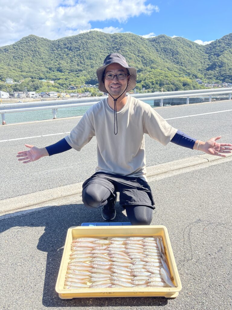 2025.10.14 釣果 オカッパリ 釣果情報_2025.10.13-001 10/13 砂虫をご購入いただいた 寺岡さまの釣果です(*´∇`*) 今回も大爆釣!!の78匹(˶ᵔ ᵕ ᵔ˶) 前日の写真ですしざんまいポーズをし損ねたので今回はしっかりポーズ決まってます♪ またのご来店お待ちしております⭐︎