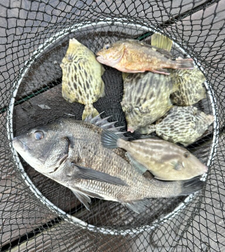 その他、カワハギ4匹、ウマヅラハギ1匹、ホゴ、ベラ、ボラ、鯛子、フグ餌取りが多く苦戦されたようですが楽しんでいただけたようです♪