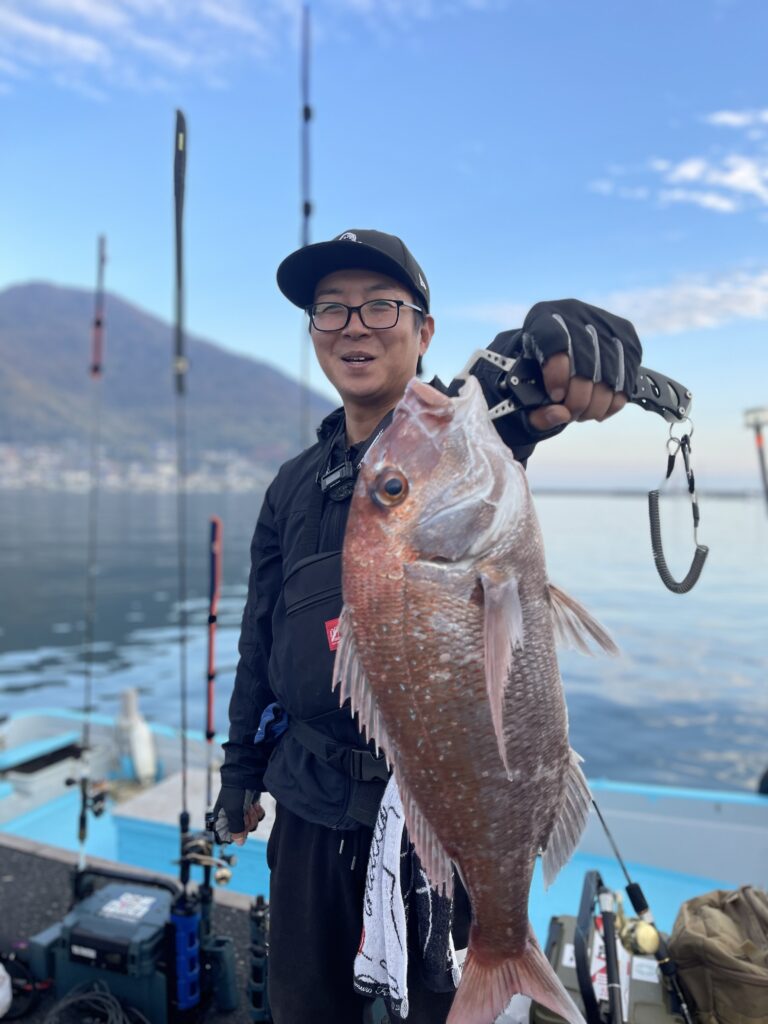 2025.11.24 釣果 貸し舟 本日の釣果情報_2025.11.24-002 貸し舟、25馬力、岡山からお越しの 三好さまの釣果です(*ˊᗜˋ*) 素晴らしい! ジグで良型真鯛げっと! ナイスサイズの真鯛にご本人もニッコリ(^^)v 初めてのご利用でしたが、ティラーハンドルの経験がおありとのこと、慣れた手つきで操船されてました! ホントお上手🎶船長もお疲れさまでした♪ またのご利用お待ちしております(^^)