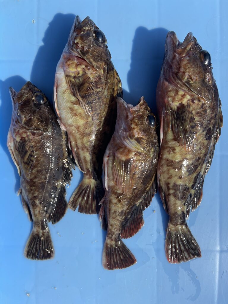 2026.03.08 釣果 オカッパリ 本日の釣果情報_2026.03.08-003 青虫ご購入いただいた 長尾さまの釣果です\(^o^)/ 本日の狙いは根魚(‘-‘ э )Э 良型のカサゴ4匹に リリースサイズのカサゴは多数^ ^ 餌釣りとワームで♪ いつもありがとうございます(* ᴗ ᴗ)⁾⁾