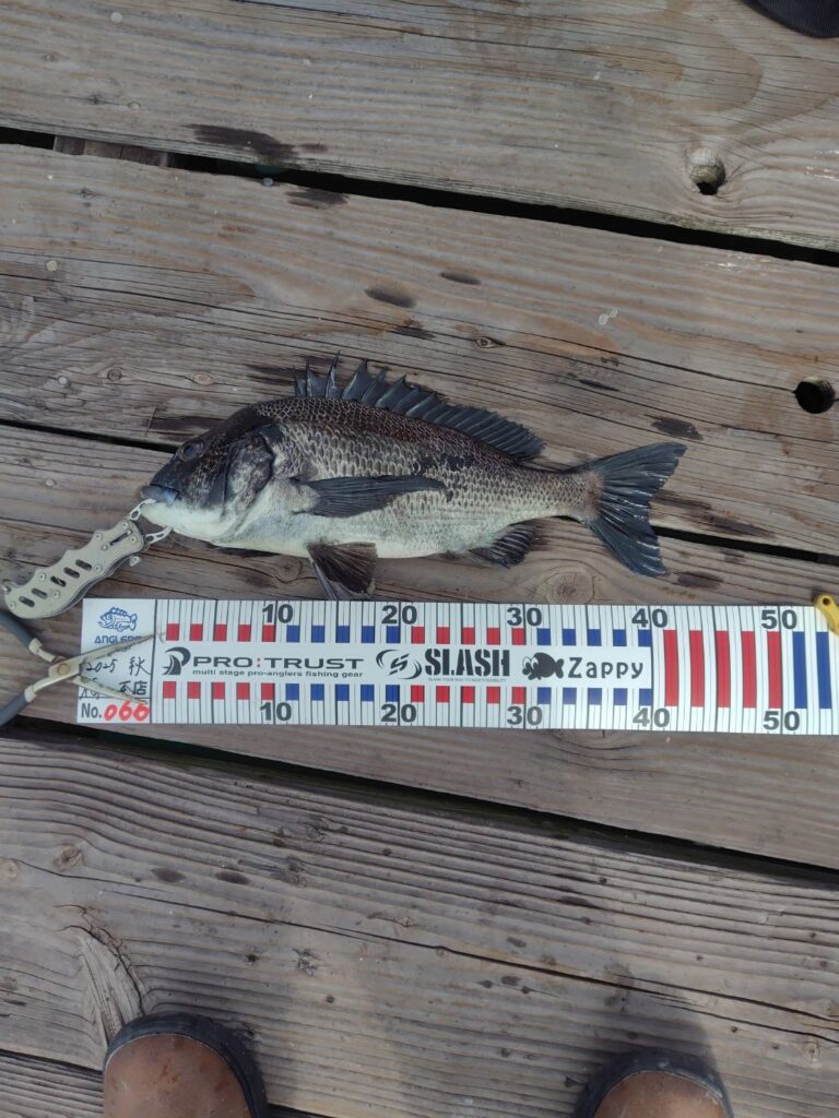 2026.03.20 釣果 釣り筏 本日の釣果_2025.03.20-003 釣り筏、 中村さまの釣果です(˶ᵔ ᵕ ᵔ˶) 渡船前に、 中村さま『いま、釣れてます?』 私『正直いってあまり釣れてないですね(^^;)』 中村さま『デスヨネー、でもワンチャンあるかなって♪』 私心の声『いやいやいま、そんなに甘くないっす』 で、お時間になったのでお迎えに上がると、 なんと42センチの良型チヌ!!(((ε( ε^o^) これはもう、ただのワンチャンでなくワンダフルチャンスありましたねーーー!! いつもありがとうございます⭐︎