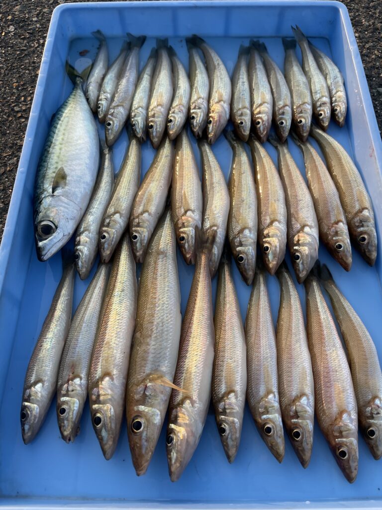 2026.04.02 釣果 オカッパリ 本日の釣果情報_2026.04.02-001 砂虫をご購入いただいた 野田さまの投げ釣り釣果です(˶ᵔ ᵕ ᵔ˶) キス34匹とSABA!! 素晴らしい(≧∀≦) 護岸からでも釣れ始めたと野田さま♪ ようやく海にも春が近づいてるんですかね♬ いつもありがとうございます⭐︎