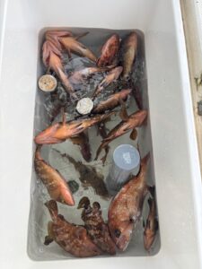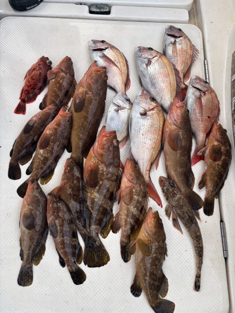 アコウてんこ盛りに真鯛、コチ、カサゴとグッドな釣果さすがでございます♬